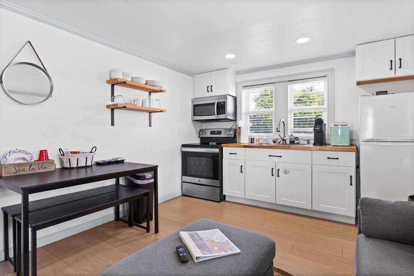 Charming Renovated Cottage w/ Community Pool ● Pack lightly for this quaint newly renovated 3-bedroom cottage with Front Porch ● Free Parking ●Outdoor pool for guests ● All the comforts of home; just perfect for a beach getaway for 6 ● One short block to the beach, Kure Beach Pier, restaurants and arcade are a quick stroll away ● Drive to Carolina Beach Boardwalk for famous Britt's doughnuts, Fort Fisher Museum, Aquarium and the Ferry that goes to Southport for an adventure you're sure to enjoy!