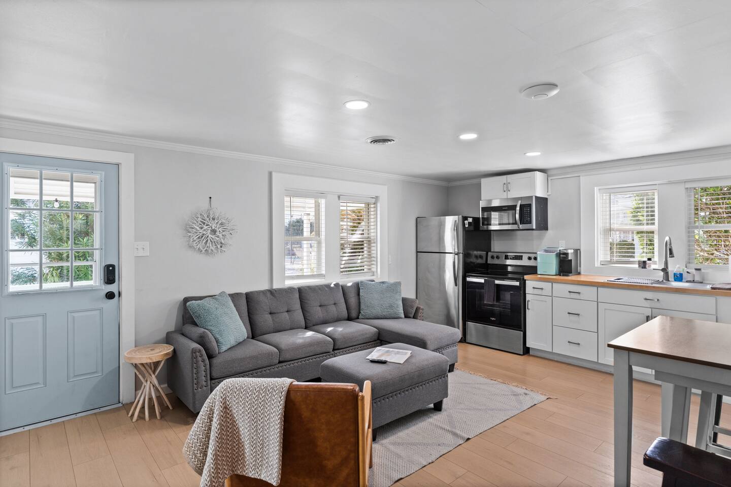 Charming Renovated Cottage w/ Community Pool ● Pack lightly for this quaint newly renovated 3-bedroom cottage with Front Porch ● Free Parking ●Outdoor pool for guests ● All the comforts of home; just perfect for a beach getaway for 7 ● One short block to the beach, Kure Beach Pier, restaurants and arcade are a quick stroll away ● Drive to Carolina Beach Boardwalk for famous Britt's doughnuts, Fort Fisher Museum, Aquarium and the Ferry that goes to Southport for an adventure you're sure to enjoy!