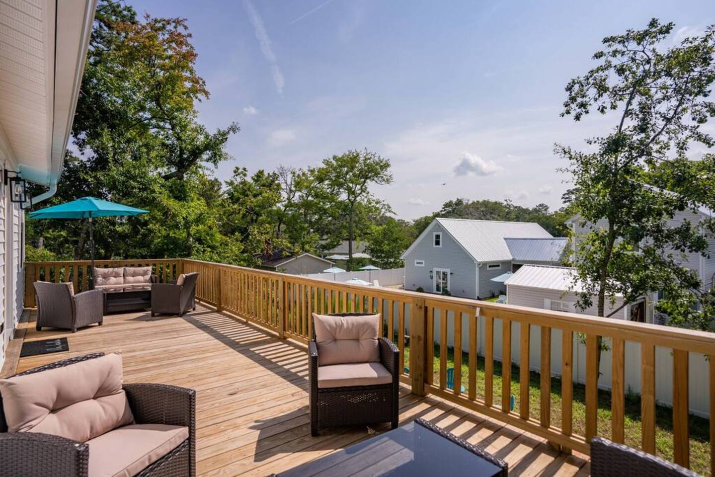 Bring your whole family or extended family to Oak Island and stay at our perfect beach house! Made for extended families as our home features double kitchens, 6 bedrooms, 4 bathrooms, 2 sleeper sofas, and tons of amenities. Guests have access to 2 sets of washers and dryers, a large sun deck, covered patio area with BBQ, swings for the kids, fire pit, beach chairs, a porta crib, high chairs, 2 PS4's, TV's in every bedroom, all linens provided, fully stocked kitchens and parking for 4 vehicles.
